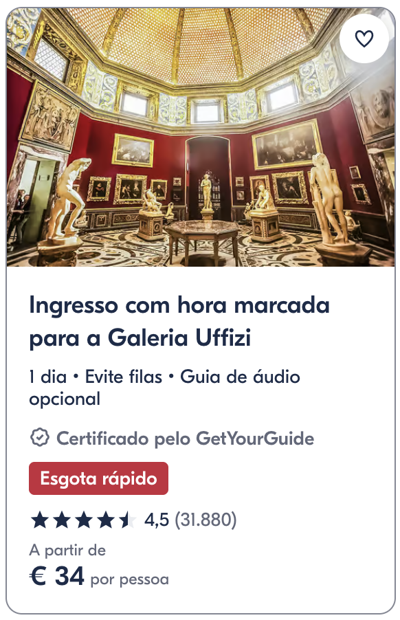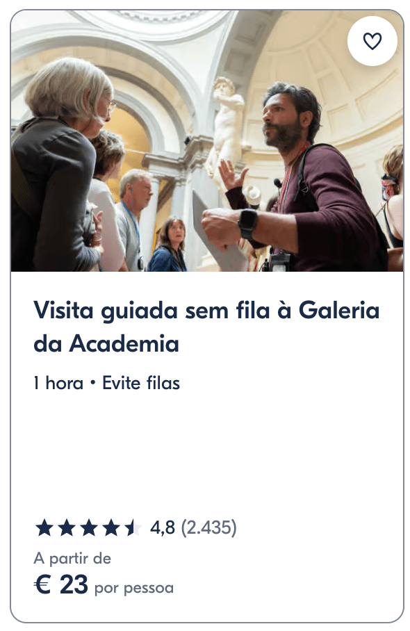 As filas para a Galleria degli Uffizi e a Galleria dell’Accademia podem ser gigantescas. Compre os ingressos online para garantir a entrada e ter mais tempo para apreciar as obras-primas.